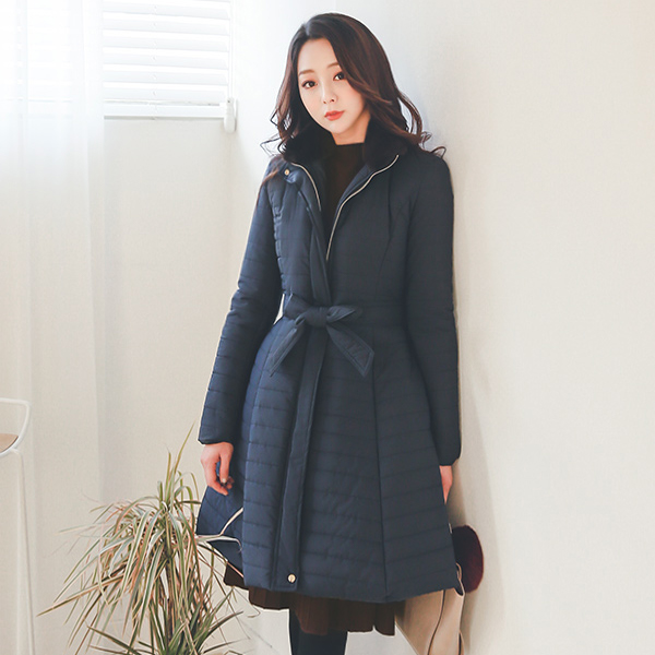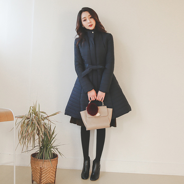 パーライニングハイネックフレアパディングコート