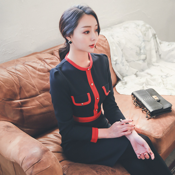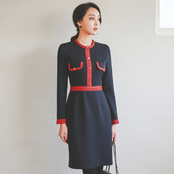 ラグジュアリーボタンライニング配色ドレス
