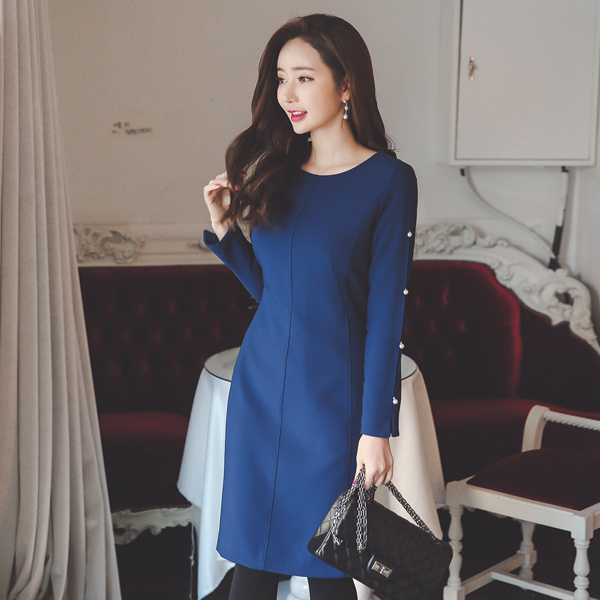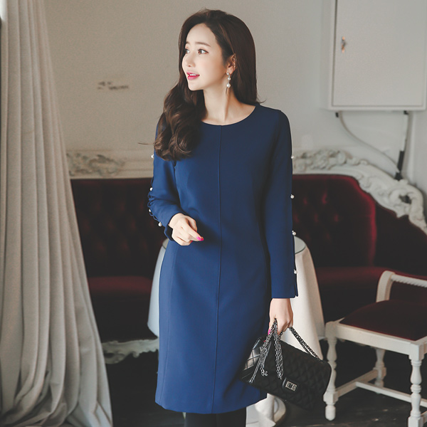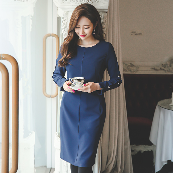 スリット真珠スリーブ切開ドレス