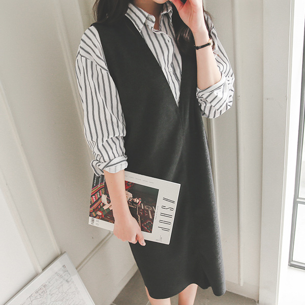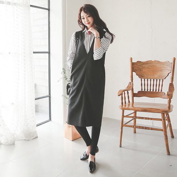 起毛ディープVのロングベストドレス