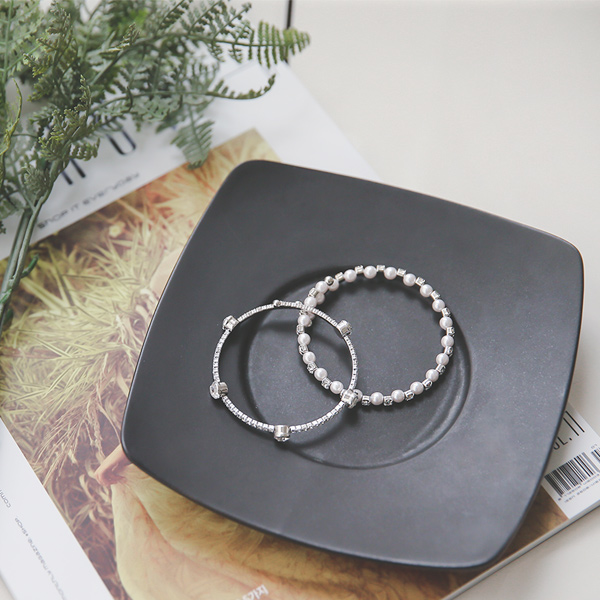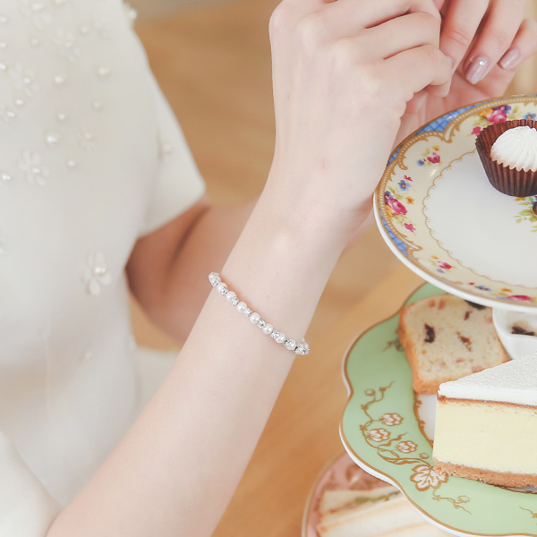 真珠&キュービック バングル ブレスレット