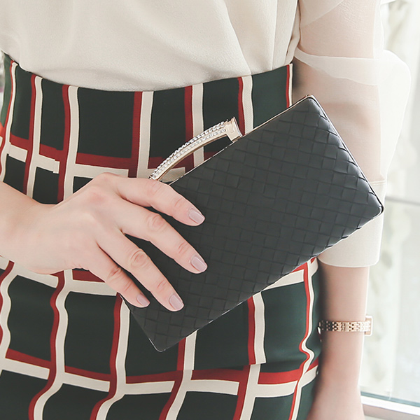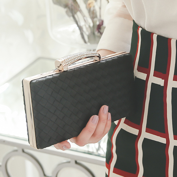 ラグジュアリーウィービングゴールドキュービッククラッチ