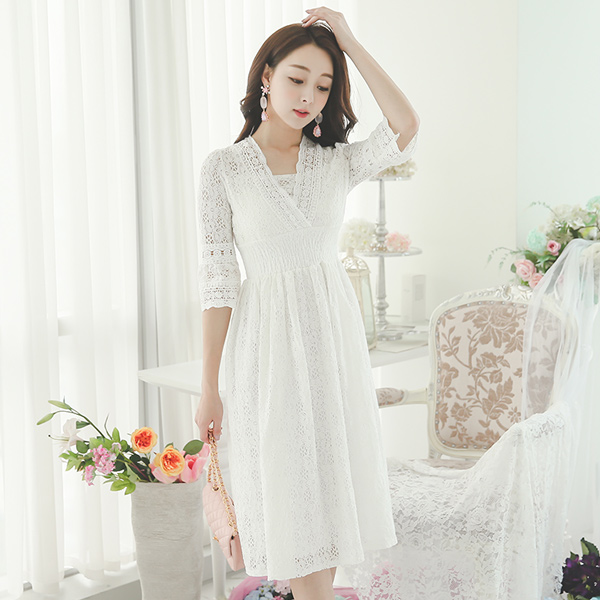 [Wedding]ホワイトアイレットレイスドレス