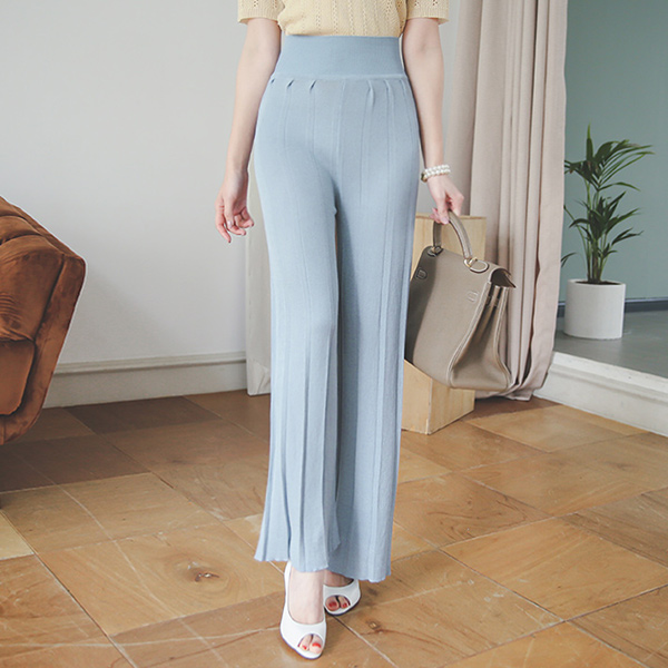 クールニットダーツプリーツワイドパンツ