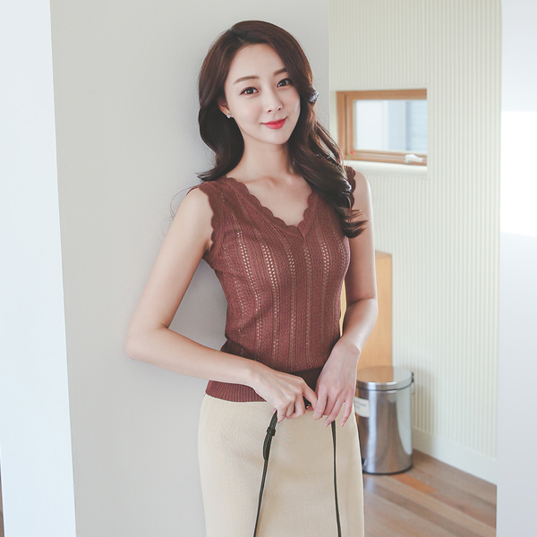 レイスブイネックパンチングニット(袖なし)