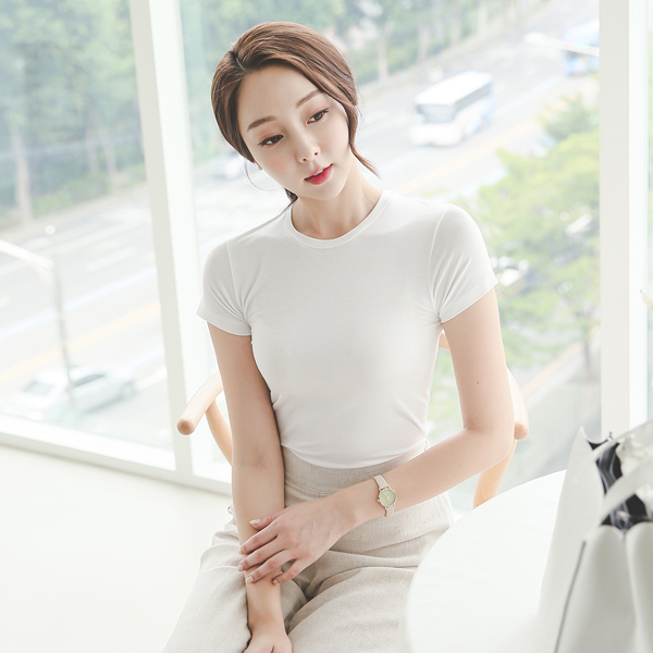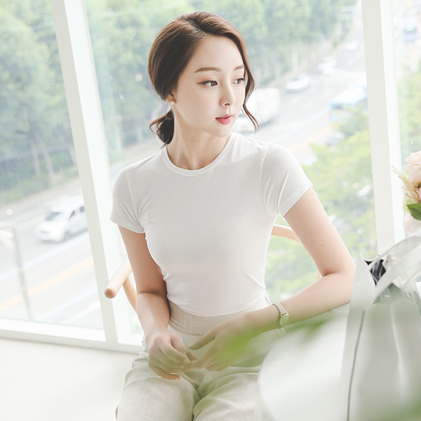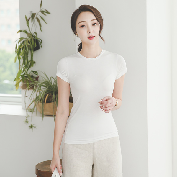 モーダルラウンドスリム半そでティー