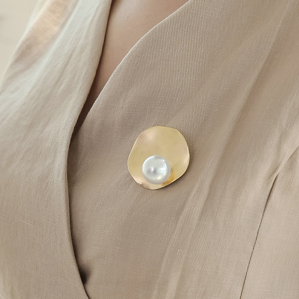ピュア真珠ゴールドブローチ