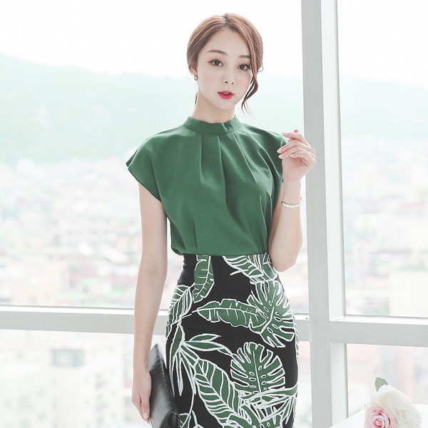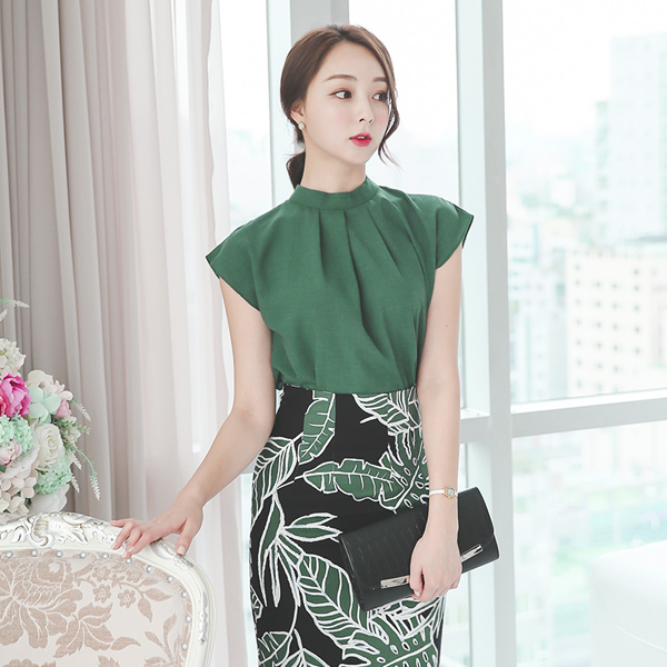ピンタックシャーリングネックフレンチブラウス