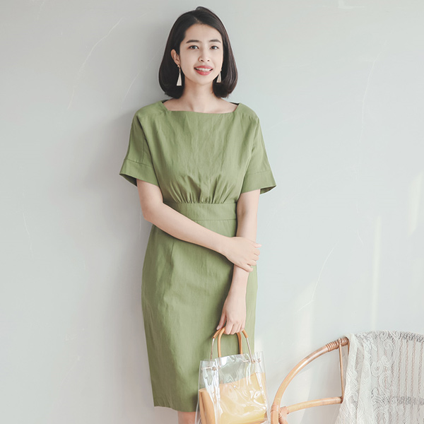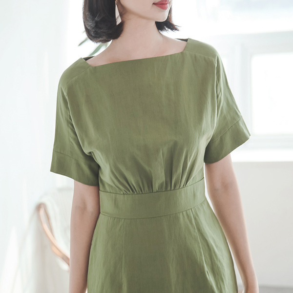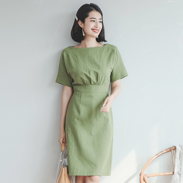シャーリングボリュームトップリネンドレス