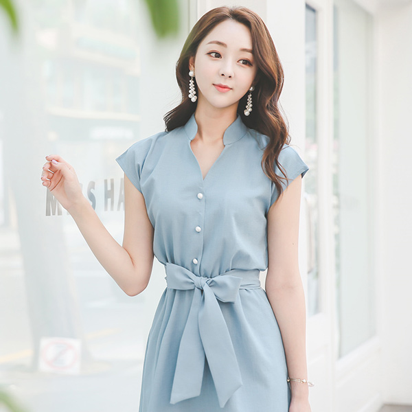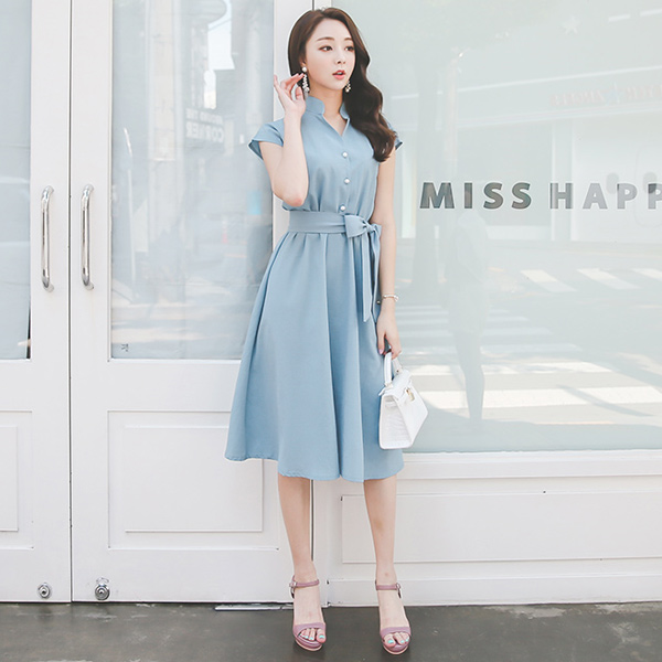 パールボタンシャツフレアドレス