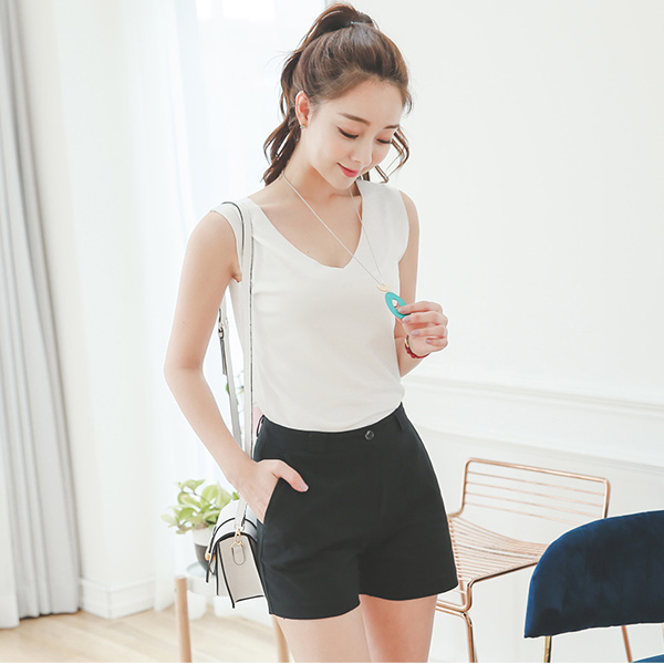 ベーシックブイネック袖なしスパンティー