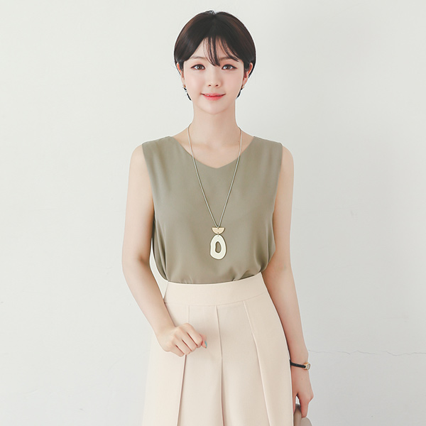 ネイチャーブイネック袖なしロングブラウス