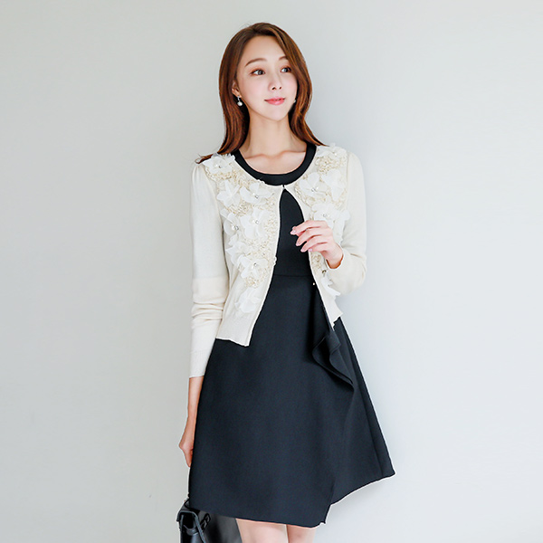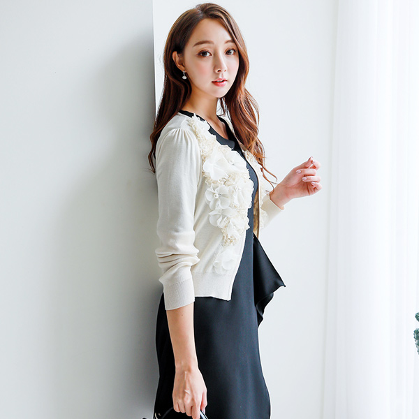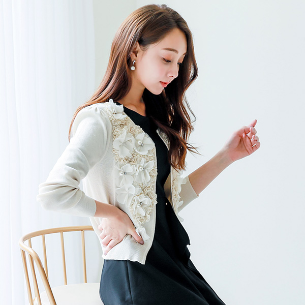 リッチフラワートリミングカーディガン