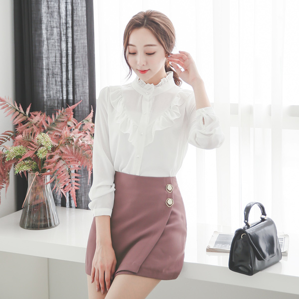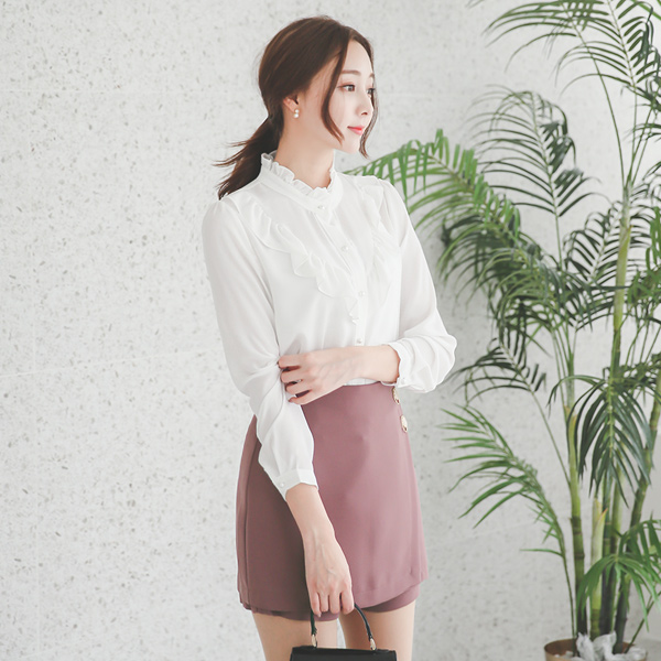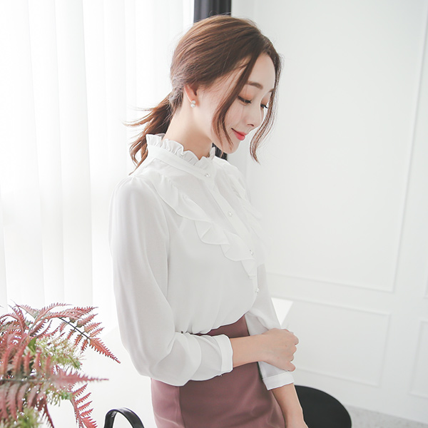 ロマンチックフリル真珠ブラウス