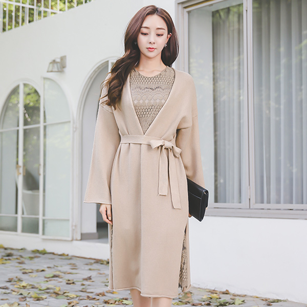 ソフト 横線スリット ロング ショルカーディガン