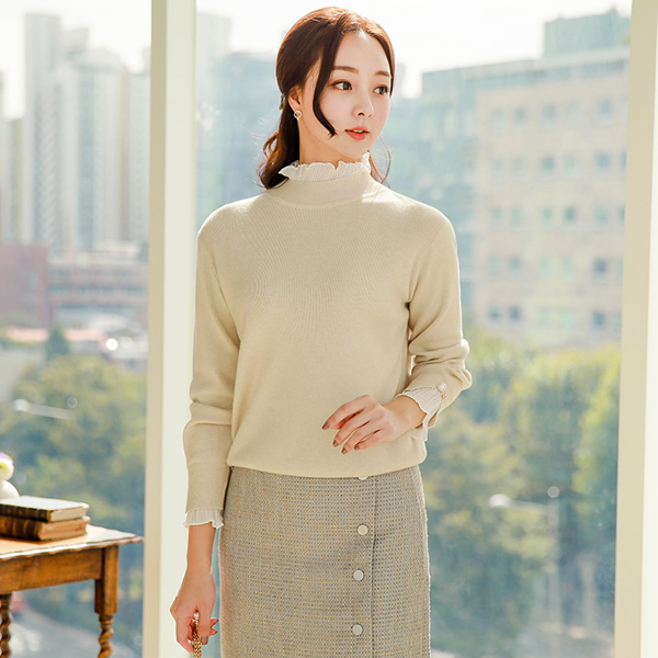 ラブリーリンクルフリルネック真珠ニットティー