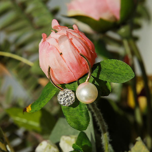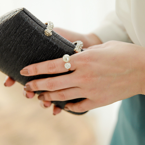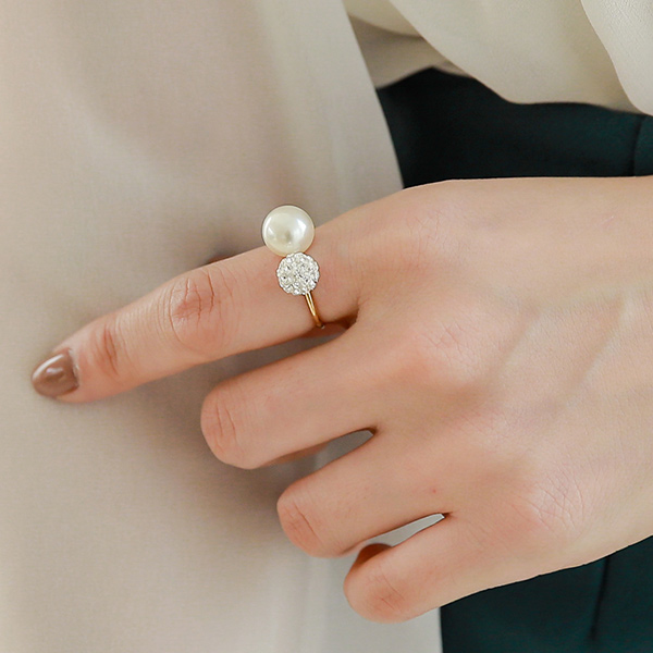 真珠の玉のキュービックゴールドリング