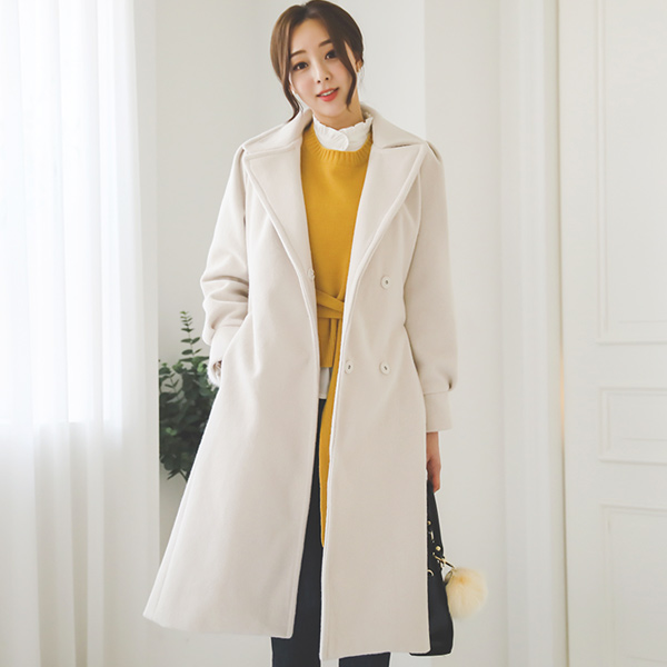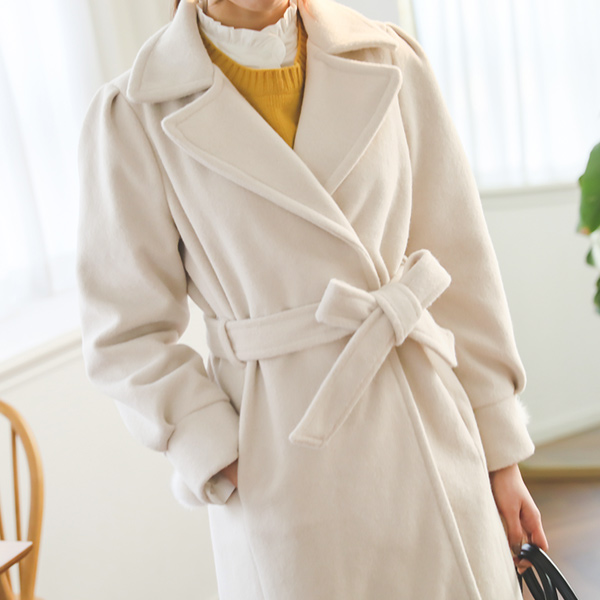 ワイドカラーポンポンがポイントロングコート