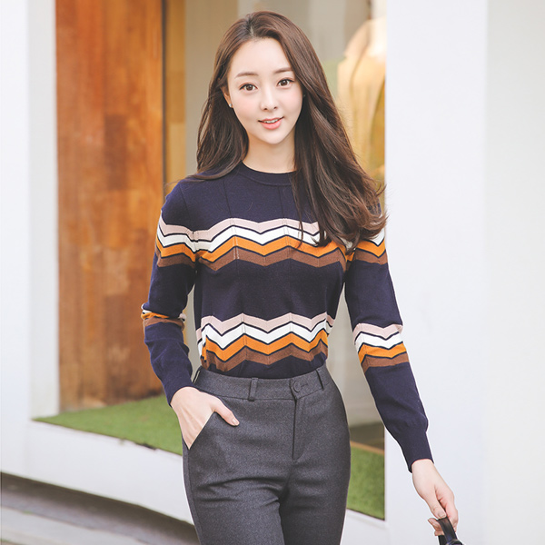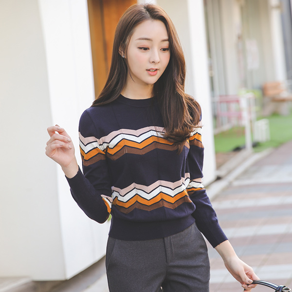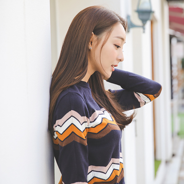 ジグザグカラー配色ラウンドニットティー