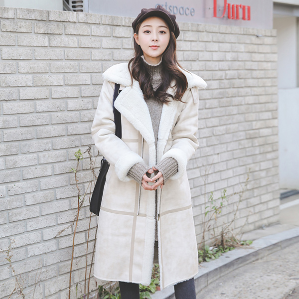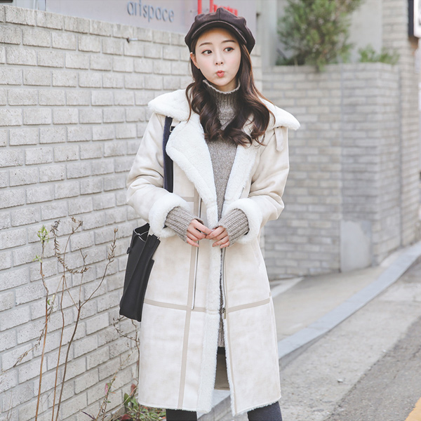 モディスィレザーラインネックバックルロングマスタング