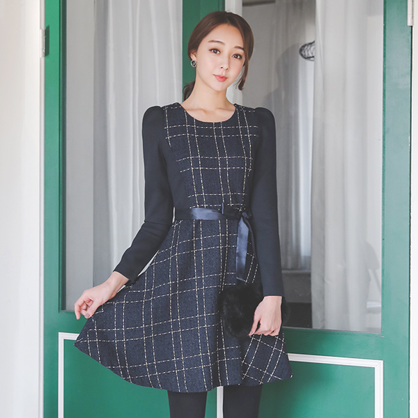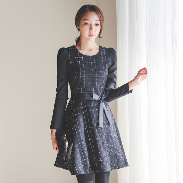 ゴールドシャイニングツイードフレアドレス
