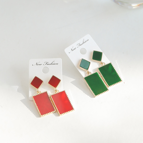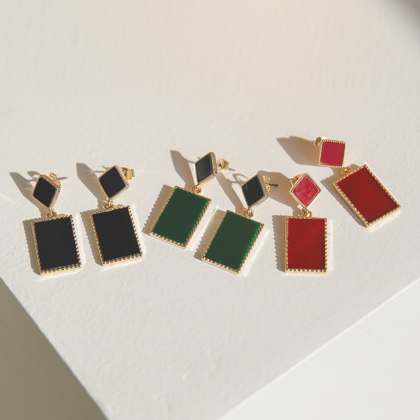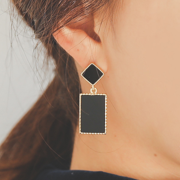 ゴールドライン四角ドロップイヤリング