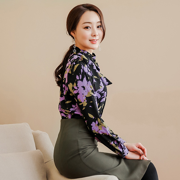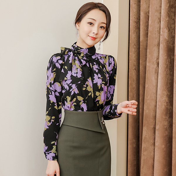 パンジーフラワーリボンスカーフシャーリングブラウス