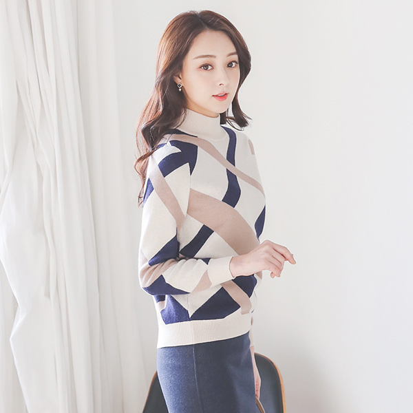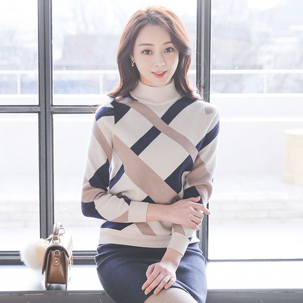 CashTouch カラー ライン とっくりえり ニット