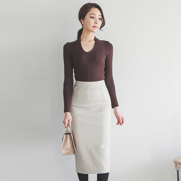 ミニマル ソフトウールたんせいミディスカート