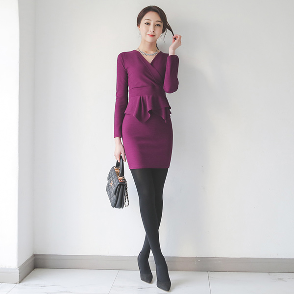 アンバランス二重ペプラム ブイネックたんせいワンピース