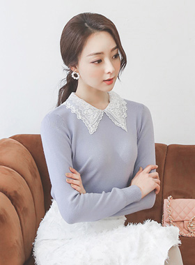 フラワー二重レースカラーニットティー