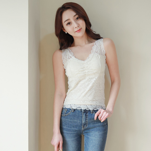 ウエーブ ブイネック シャーリング レイス 袖なし