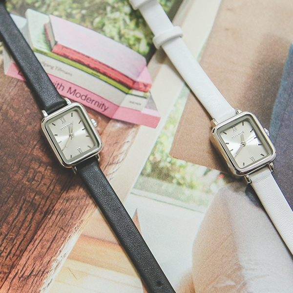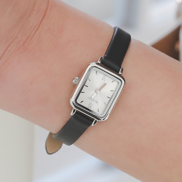 カーフスキンスクエアシルバー時計