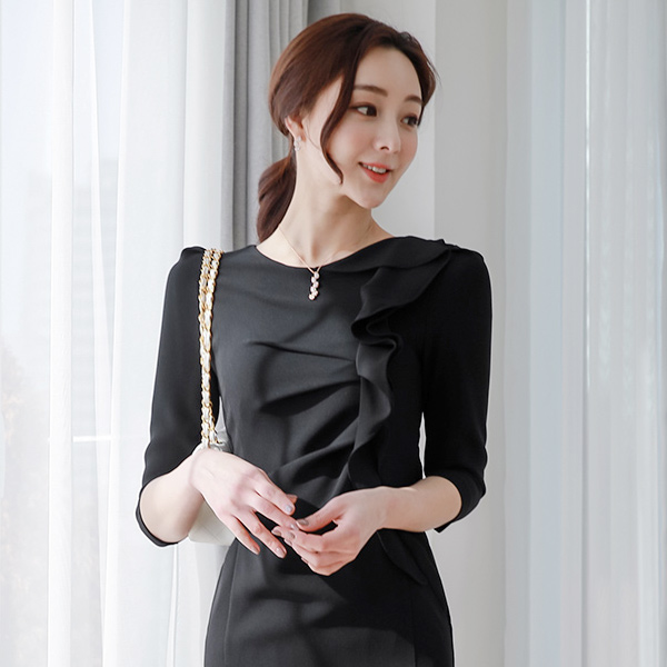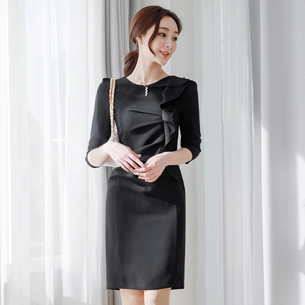 ギャザーシャーリング サイドフリル 切開 ワンピース