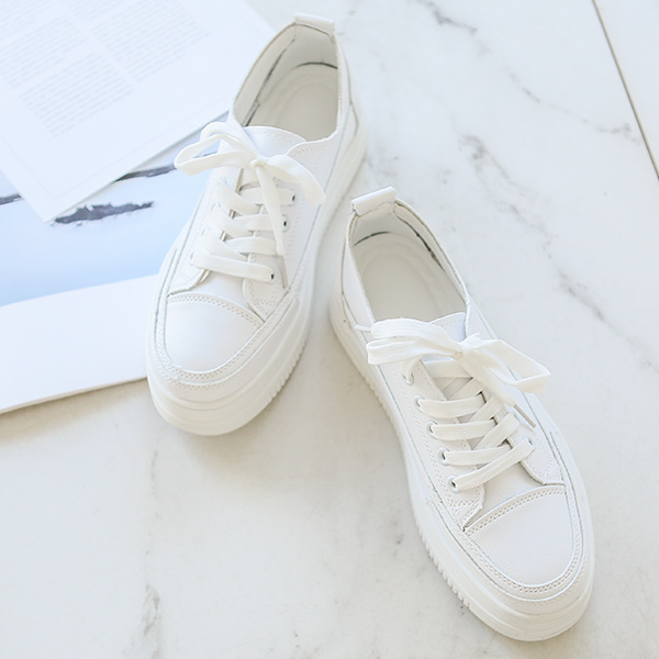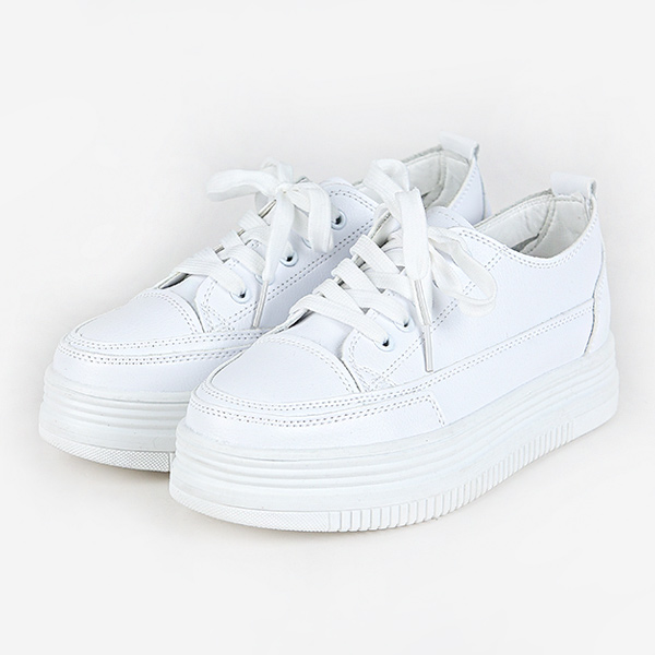 ホワイト シンプル プラットフォームソール スニーカー