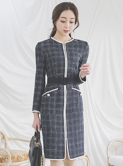 バイアス ツイード 輪ベルトジッパー ワンピース