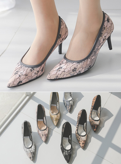 フェミニン シースルー レイス&ヒョウがら スティレット