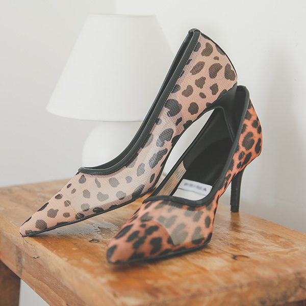 フェミニン シースルー レイス&ヒョウがら スティレット