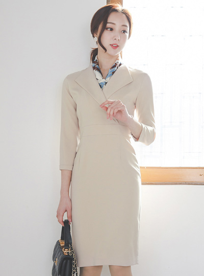 モダン ウイング・カラー ロールアップ スリム弾性 ワンピース