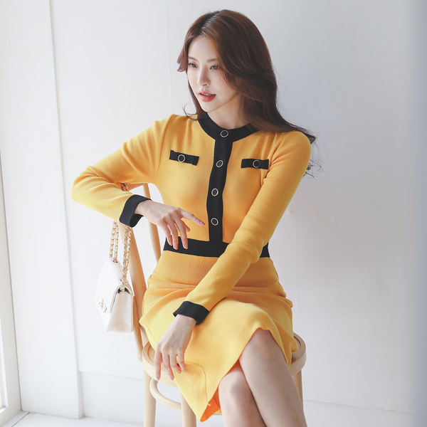 Coco ゴールドわ ブラックライン ニット ワンピース