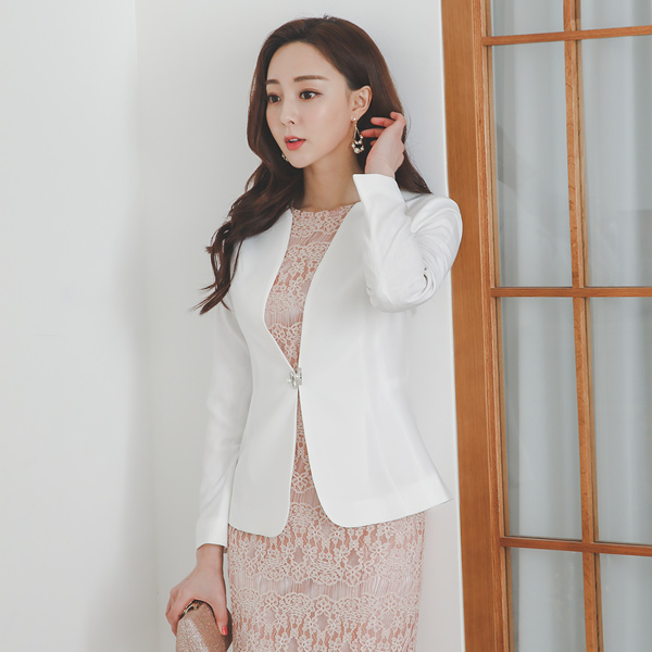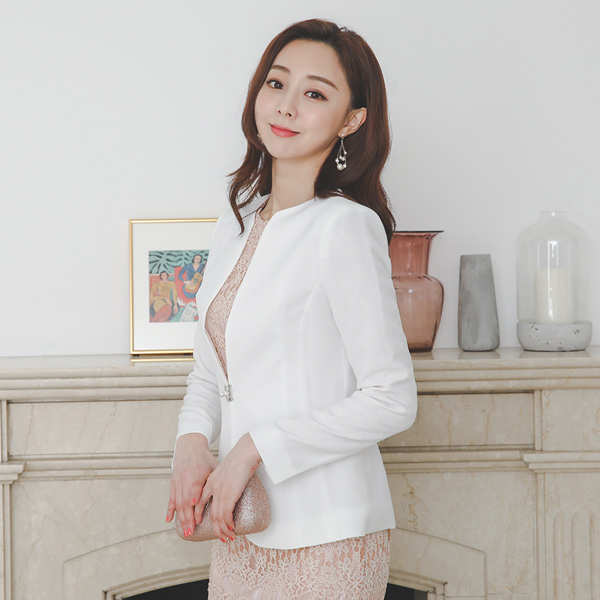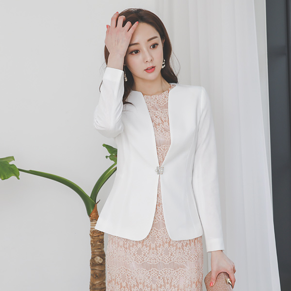 シルバースクエア 真珠ボタン ノーカラー ジャケット