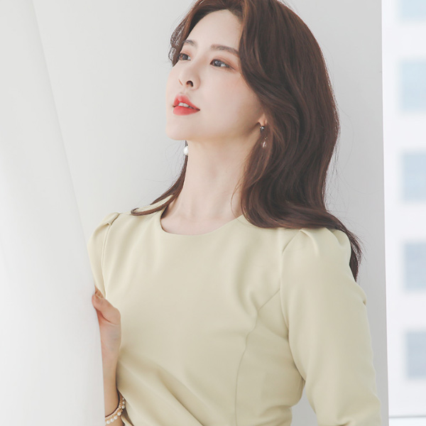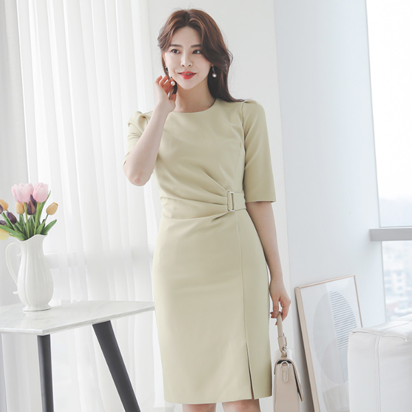 ギャザーシャーリング サイド スクエア バックル スリット ワンピース