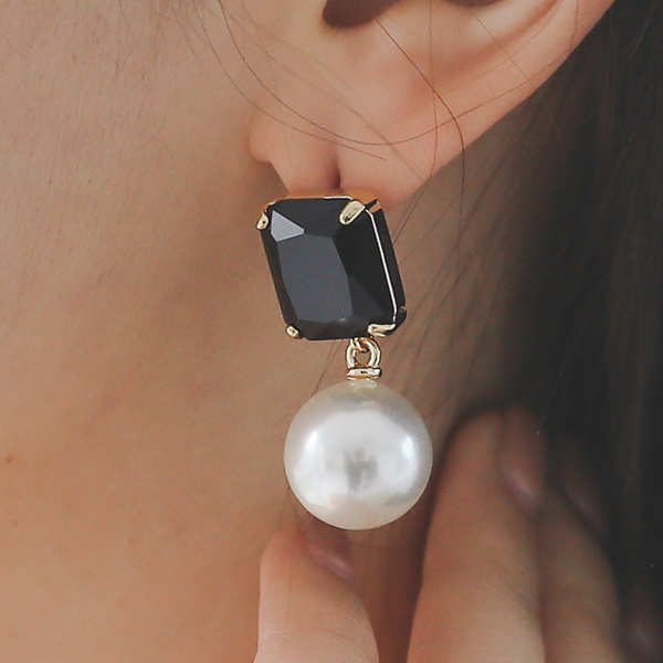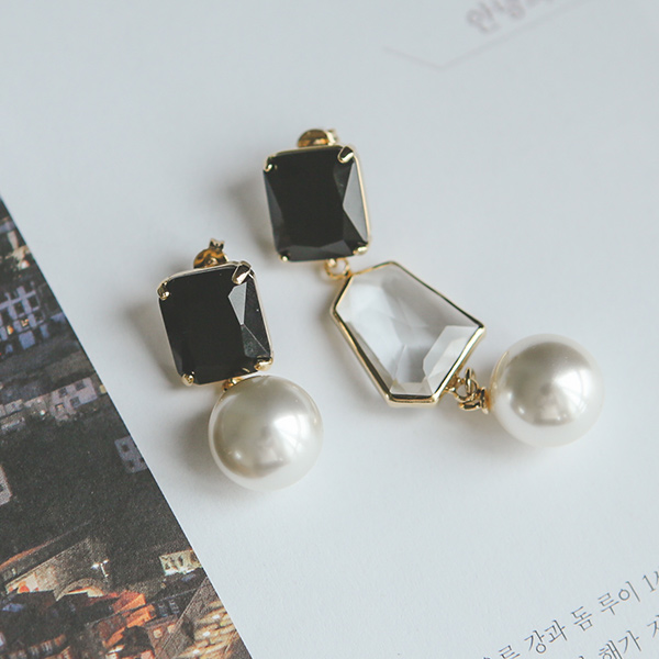 Black ストーン アンバランス イヤリング
