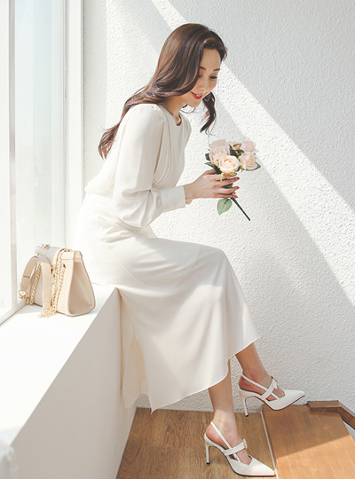 トリプル ピンタック 二重 切開 フレア ワンピース