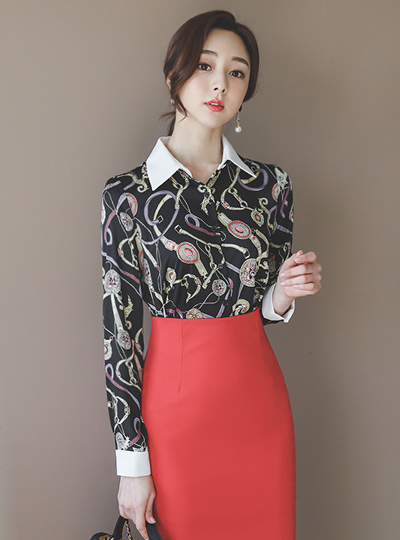 ラグジュアリー チェーンパターン 配色カラー シャツ ブラウス