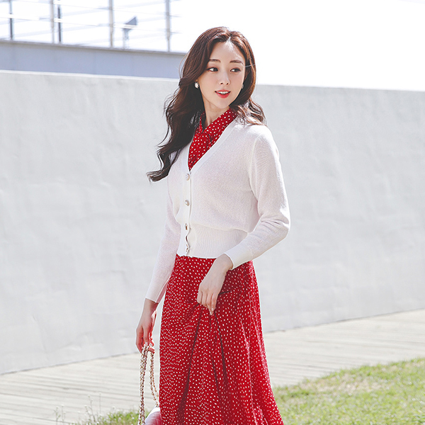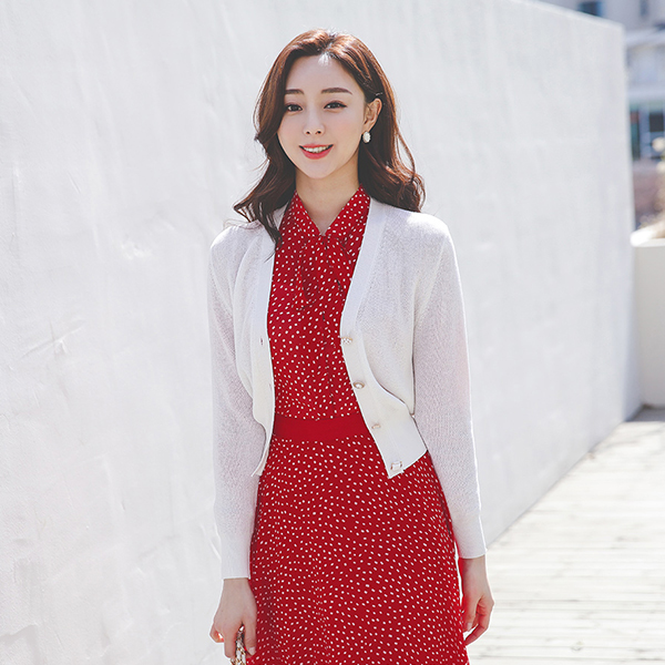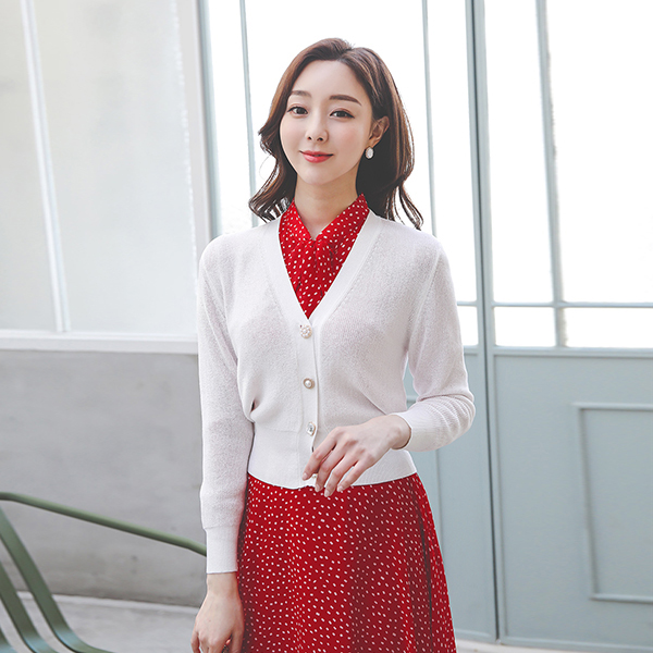 ビジュ 色とりどり ボタン ブイネック カーディガン