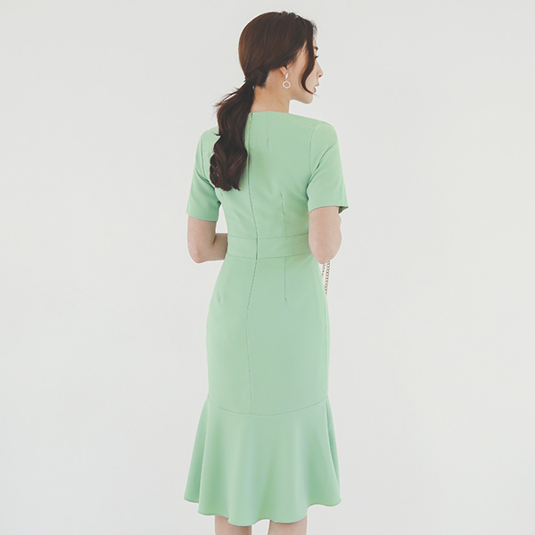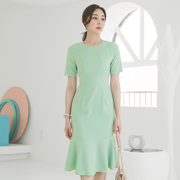 ラウンド 切開 ピンタック マーメイド ワンピース