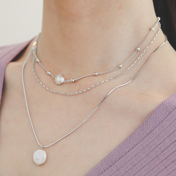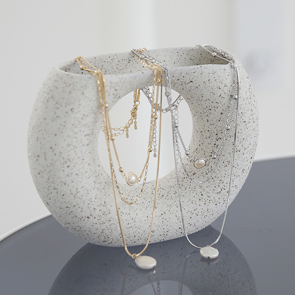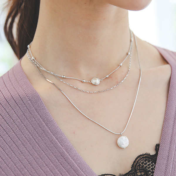 マーブル レイヤード 真珠 ネックレス