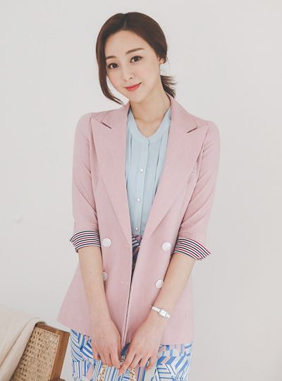 ストライプ はいしょく スリム ダブル リネン ジャケット