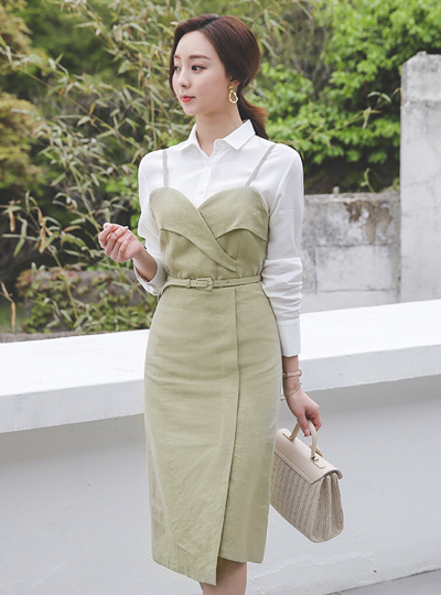 ユニーク 背中ペプラム シルキー シャツ ブラウス